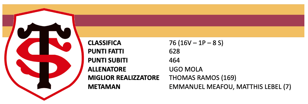 La squadra rimane saldamente al primo posto gareggiando contemporaneamente in Champions Cup, prima di incrociare il Leinster, e nonostante una rosa profonda e qualitativamente indiscutibile, il Sei Nazioni fa pagare un conto salatissimo: assenza per un lungo periodo di molte stelle e infortuni di entrambi i sopracitati Jelonch e Capuozzo. Mola ha fatto di necessità virtù, valorizzando a pieno Meafou (1718 minuti giocati in questa stagione tra tutte le competizioni), dando fiducia ad Alexandre Roumat a numero 8 e al nuovo acquisto Jack Willis (portato a casa dalle ceneri dei Wasps) sempre in terza linea, venendo ripagato con una pioggia di mete dalla mischia. Tra i trequarti, dopo un girone d’andata eccellente, una serie di infortuni hanno un po’ rallentato l’ex-LOU Barassi, ma la gli enfants du Pays Lebel e Delibes hanno garantito mete e gioco e il veterano Sofiane Guitone ha rivestito il ruolo di leader per tutto il campionato.
