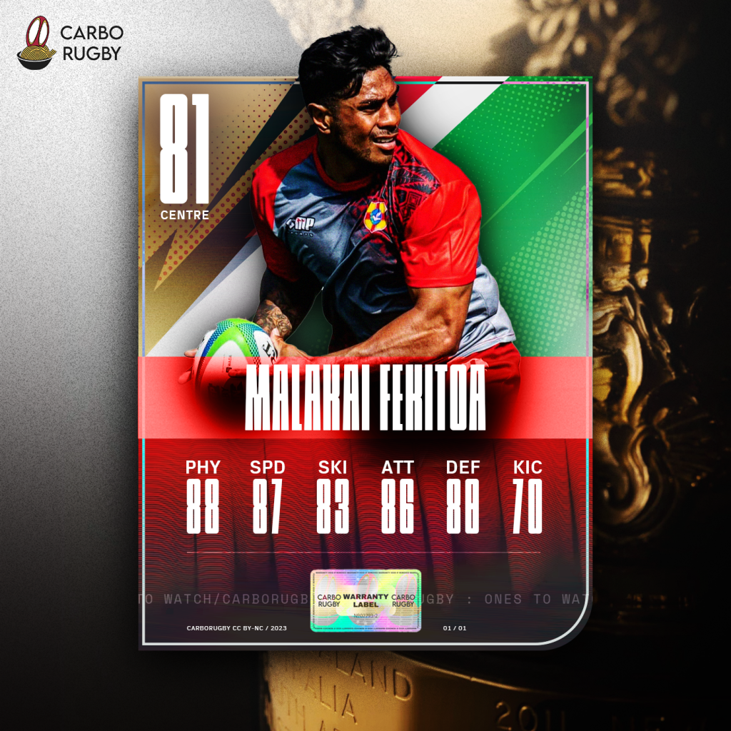 2 anni a Tolone, 3 ai Wasps, ma soprattutto 4 con gli All Blacks. Con le nuove regole Fekitoa ha potuto vestire anche la maglia della sua patria originaria, Tonga. Centro fisicamente devastante con linee di corsa affilate come coltelli che sa scegliere in una frazione di secondo mentre la difesa si schiera. Per la difesa non c’è respiro.