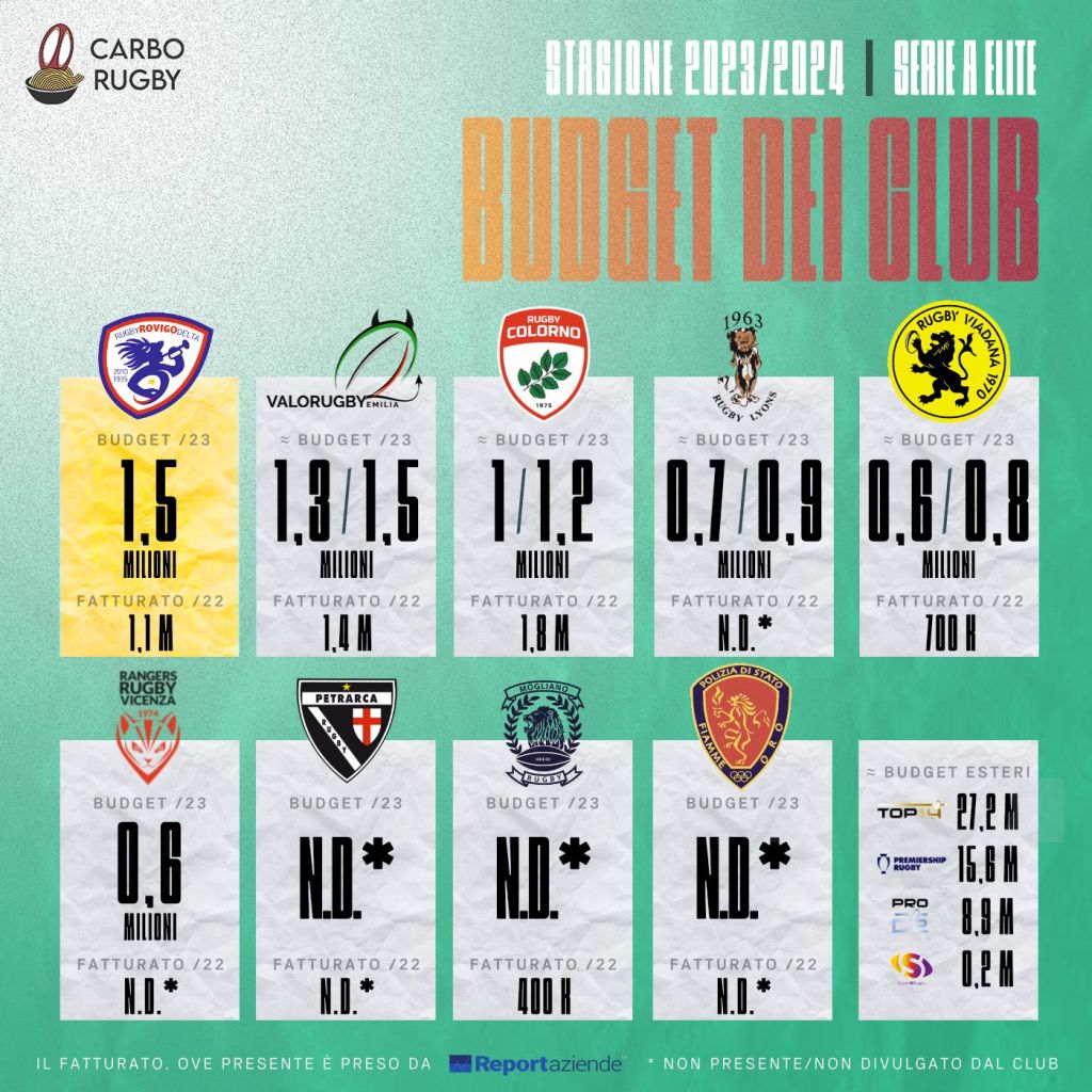 Nel corso dei mesi estivi abbiamo contattato le varie società dell’ex-Top10 (ora Serie A Élite) per avere alcuni dati economici, di pubblico e di settori giovanili, questo per farci un’idea di come stanno andando le cose nelle varie “case”, ma soprattutto nelle varie casse. C’è da dire che non siamo riusciti a radunare tutti i dati, nonostante la nostra insistenza, manifestata in quattro email inviate in quattro mesi e scrivendo in parallelo ai social media manager via instagram. Società come il Petrarca, le Fiamme Oro e il Mogliano non ci hanno mai risposto alle email, ad esempio. Il Mogliano ci ha suggerito “un’altra mail” ma che poi è caduta nel nulla, senza ricevere risposta. Senza voler essere per forza polemici, ci piacerebbe però evidenziare come il nostro sforzo di aiutare questo campionato a farsi pubblicità sia caduto in parte nel vuoto. Forse bisognerebbe lavorare un po’ sulle skills di comunicazione, e modernizzarsi per rimanere una lega attrattiva. A parte questo discorso che chiaramente vuol essere un po’ provocatorio, risulta chiaro come le società di Serie A Élite non siano necessariamente tutte attrezzate per comunicare bene quanto, ad esempio, quelle di ProD2 in Francia. Questa, nel 2023, è una cosa che va migliorata per poter avere un posto nella narrativa del rugby.