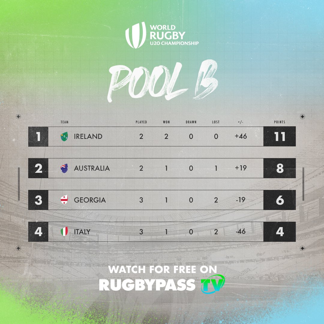 Il girone degli azzurrini alla vigilia era visto come uno dei più competitivi del torneo, viste le prestazioni delle quattro nazionali sia allo scorsa rassegna iridata sia ai vari tornei e match a cui hanno preso parte. Italia e Irlanda al 6 Nazioni di categoria hanno infatti avuto una partita combattutissima, risolta dall’Irlanda soltanto a pochi minuti dalla fine ed in bilico sino al fischio finale. L’Australia ha ben figurato nella scorsa rassegna iridata, dimostrando di avere al suo arco molteplici talenti con un profilo di atletismo di altissimo livello. La Georgia invece è in vertiginosa crescita, tanto da battere l’Inghilterra in una specie di warm-up match pre-mondiale. Della crescita georgiana ne abbiamo pagato le conseguenze dirette sia lo scorso anno che questo, subendo due sconfitte abbastanza nette nei gironi iridati, anche se c’è un’altra occasione domani (19/07, ndr) per vendicarsi delle due sconfitte passate. L’Irlanda partiva ovviamente come favorita nei pronostici, e li ha rispettati, battendo gli Azzurrini – per 55 a 12 – e la Georgia per 22 a 16 in una partita decisamente più combattuta. Con l’Australia il match non si è potuto disputare a causa delle condizioni meteo proibitive, ma sicuramente i giovani trifogli partivano da favoriti anche in quel match. Oltre allo strapotere irlandese il girone è stato molto equilibrato, con l’Australia che all’esordio ha sconfitto la Georgia per 35 a 11, ma che ha poi successivamente perso con gli Azzurrini per 12 a 17 in un’altra partita giocata in condizioni quasi apocalittiche, che ha ricalcato un po’ il successo che l’Italia ha avuto contro i Junior Springboks nella scorsa edizione. La Georgia ha invece vinto soltanto con l’Italia per 28 a 17. In quest’ultima partita erano ancora aperti tutti i giochi, in quanto gli Azzurrini avevano ancora la possibilità di finire secondi nel proprio girone ed andare a giocare per i posti dal 5° all’8°. Con il risultato in favore della Georgia quest’ultime due nazionali hanno lasciato il secondo posto all’Australia, andando così a giocarsi il gironcino per i posti dal 9° al 12°. Fortunatamente gli Azzurrini hanno vinto la “semifinale” con la Spagna ed andranno a giocarsi il 9° posto con la Georgia, come già scritto sopra, rinnovando una sfida che oramai sta diventando un classico. Ma ora parliamo un po’ dei talenti che hanno più rubato l’occhio nel Girone B.